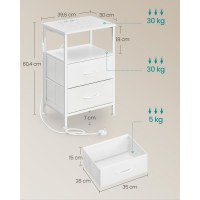 Skab ro i soveværelset med et stilrent sengebord, der kombinerer stål, træmateriale og tekstil for et blødt og moderne udtryk. Den integrerede ladeenhed med 2 stikkontakter, 2 USB‑A og 1 USB‑C holder mobil, ur og høretelefoner opladet – alt inden for rækkevidde ved sengekanten.