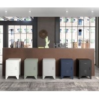 Det solide metalstel og den matte pulverlakering gør natbordet robust i hverdagen og let at matche med andre møbler. Fronten prydes af diskrete ventilationsdetaljer og et greb, som fuldender det industrielle design. Et enkelt valg, der giver funktionel opbevaring og et roligt, nordisk look.