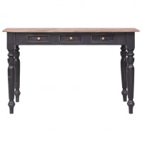 Dette skrivebord er lavet af massivt mahognitræ, så det er yderst holdbart og robust. Mahogni er et tropisk hårdttræ, der skiller sig ud fra mængden på grund af sin skønhed, holdbarhed og farve. Det specielle håndværk giver møblet et vintagepræg samt et varmt og autentisk look. Det udsøgte håndværk føjer også til den spektakulære retrostil. Hvert trin i fremstillingsprocessen er udført med den største omhu, hvad enten det er polering, maling eller lakering. Hvert produkt har smukke åremønstre, der gør dem til markante møbler i dit hjem. Skrivebordet er designet med 3 skuffer, så det tilbyder masser af plads til opbevaring af dine personlige ejendele.
