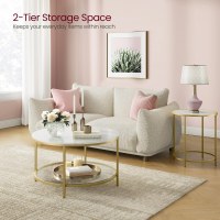 - Moderne, minimalistisk udtryk med hvid marmor-look og gyldne ben
