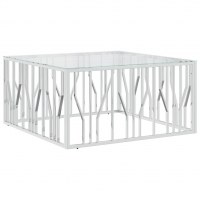 Sofabord 100x100x50 cm rustfrit stål og glas