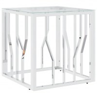 Sofabord 50x50x50 cm rustfrit stål og glas sølvfarvet