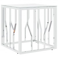 Sofabord 50x50x50 cm rustfrit stål og glas sølvfarvet