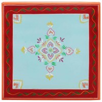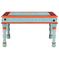 Dette sofabord i træ har flotte, håndmalede dekorationer, så det bliver et blikfang i din stue.