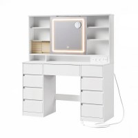 Skab ro og overblik i din daglige skønhedsrutine med dette minimalistiske toiletbord i hvid. De glatte, grebsfri fronter giver et stilrent udtryk, mens de mange skuffer og åbne rum gør det nemt at organisere makeup, smykker og plejeprodukter. Det kvadratiske spejl har justerbar LED-belysning, så du kan finindstille både lysstyrke og farvetone til alt fra morgenrutiner til aftenmakeup. Med den aftagelige forstørrelsesdel kan du arbejde i præcise detaljer som eyeliner og bryn.