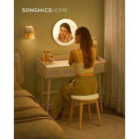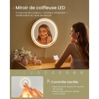 Skab din egen rolige skønhedsoase med dette elegante toiletbord fra BOHOVEN-kollektionen. Den runde spejl med lys gør din daglige rutine både nemmere og mere behagelig. Med styringen kan du justere lysstyrken og skifte mellem natur- og varm lys, så du altid får den rette belysning til makeup og styling.