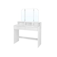 Gør din morgenrutine nemmere med dette moderne toiletbord i hvid. Det store, tre-delte spejl kan foldes, så du kan se din makeup fra flere vinkler og nemt ordne frisuren. Den hævede hylde og de åbne rum giver et overskueligt overblik, mens de to rummelige skuffer holder dine yndlingsprodukter tæt på håndens rækkevidde.