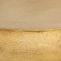 Dette sofabord er lavet af hamret aluminium, så det er holdbart og af høj kvalitet. Vores bord har en robust bordplade, hvorpå du kan placere mad eller drikkevarer eller fremvise pyntegenstande såsom billedrammer eller potteplanter. Det attraktive, hamrede udseende føjer også til bordets taktile tekstur.