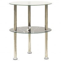 Sidebord med hylde 38 cm hærdet glas transparent og sort
