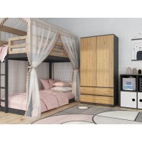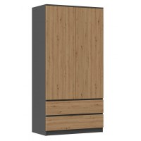 Garderobeskab Topeshop MALWA AN/AR – 2 døre, 5 hylder, eg/anisgrå