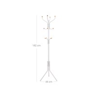 Denne elegante stumtjener giver dig masser af plads til hverdagens overtøj. Med 12 kroge – 8 øverst til jakker, hatte og tørklæder og 4 midt på til tasker – udnytter du pladsen optimalt, mens selve stativet fylder minimalt. Den glatte overflade i cremehvid/ivory er rustbestandig og nem at holde ren; en blød klud er nok til den daglige aftørring.