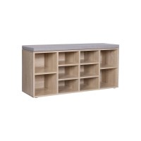 Gør din entré indbydende og ryddelig med denne skobænk med pude. Sæt dig behageligt, når skoene skal af og på, og nyd et stabilt møbel med en max. statisk bæreevne på 150 kg. Den aftagelige betræk i linned-look er nem at rengøre, og de 10 rum giver overblik over hverdagens sko og småting.