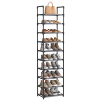 Hold styr på hele familiens fodtøj med denne skoreol med 10 hylder. Den slanke størrelse på 45 × 28 × 173 cm udnytter højden i rummet og frigør gulvplads, så din entré eller garderobe hurtigt ser ryddelig ud. Non-woven hylder giver skånsom opbevaring til alt fra sneakers til loafers.