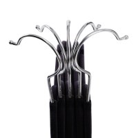Få styr på garderoben med disse elegante bøjler i sort velour. Den bløde overflade øger friktionen, så tøjet bliver hvor det skal – selv glatte skjorter. De indbyggede riller på skuldrene forhindrer, at stropper glider af. Med et slankt men robust design kan hver bøjle bære op til 5 kg, så både skjorter, kjoler og tunge frakker kan hænge pænt.