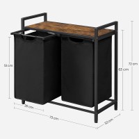 Hold styr på hverdagen med denne elegante vasketøjskurv fra VASAGLE. De to rummelige oxford-poser på 2 × 46 l gør det nemt at sortere sengetøj og tøj – eller lyse og mørke farver – fra start. Den øverste hylde i rustik brun giver ekstra plads til badeværelsesting som vaskemiddel, skyllemiddel eller håndklæder, så det hele er inden for rækkevidde.