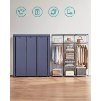 Få styr på garderoben med dette rummelige, foldbare tøjskab i mørkeblå. Hæng skjorter, kjoler og jakker på de to stænger, og læg trøjer, jeans og tilbehør på de praktiske hylder. Alt er samlet ét sted, så du hurtigt kan finde dit outfit til dagens planer. Den diskrete farve og enkle form passer både i soveværelse, stue og walk-in.