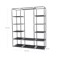 Få styr på tøj, sko og tilbehør med dette rummelige garderobeskab fra SONGMICS. Med målene 150 × 45 × 175 cm giver det masser af plads, og den 132 cm høje bøjlestang er ideel til lange frakker og vinterjakker. Den sorte stofbeklædning kan lynes helt til for at holde støv væk – eller rulles op, så du nemt kan finde dagens outfit.