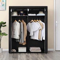 Få hurtigt styr på garderoben med dette rummelige tøjskab i stof fra SONGMICS. Skabet har 2 bøjlestænger til jakker, kjoler og skjorter samt to justerbare hylder til tasker, kasketter og småting. Den sorte stofbeklædning med lynlås og velcrolukning beskytter indholdet mod støv og holder soveværelset pænt og roligt.