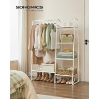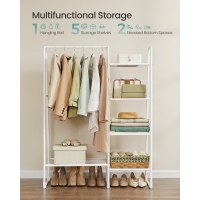 Skab overblik i garderoben med dette tøjstativ, der samler alt på ét sted. Den lange bøjlestang giver plads til kjoler, frakker og skjorter, mens de 5 åbne hylder holder tasker, tilbehør og sko samlet og let tilgængelige. Det åbne design gør det nemt hurtigt at finde dagens outfit – perfekt til travle morgener.