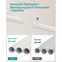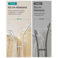 Den kraftige metalramme med boltesamlinger giver stabilitet og en samlet maksimal belastning på 100 kg. Afstanden på 42 cm mellem de to bøjlestænger lader luften cirkulere, hvilket hjælper tøjet med at tørre hurtigere og gør det lettere at få overblik uden at tøjet klumper sammen.