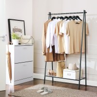 Den stabile A-ramme i stål er skabt til daglig brug. Bøjlestangen har en maksimal statisk bæreevne på 40 kg, og bundhylden kan bære op til 15 kg. Med letforståelige, illustrerede instruktioner og nummererede dele går monteringen hurtigt, så du kan få styr på garderoben uden stress.