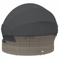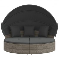 Udendørs loungeseng med tag og hynder polyrattan grå