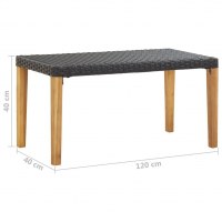Havebænk 120 cm polyrattan og massivt akacietræ sort