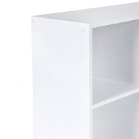 Reolen er fremstillet i hvid spånplade og samlet med cam‑låse for ekstra stabilitet. Overfladen har melamin, som er nem at holde ren og er ridsefast. Hvert rum kan bære op til 10 kg, og to af rummene er ekstra store – ideelle til mapper og dokumenter på hjemmekontoret. Skjulte skruehuller og bundpuder beskytter gulvet og giver et pænt, fuldendt udtryk.
