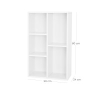 Denne kompakte bogreol giver dig ryddelig opbevaring uden at stjæle gulvplads. Med målene 50 × 24 × 80 cm passer den nemt ind i stue, kontor, entré eller børneværelse. De 5 rum giver plads til bøger, DVD’er, mapper, grønne planter og dekorative favoritter, så dit hjem fremstår indbydende og organiseret.