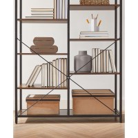 Reolen kombinerer en sort stålramme med robuste hylder i spånplade. De X-formede stivere bagtil giver ekstra stabilitet, så møblet står sikkert i hverdagen. Monteringen er enkel takket være tydelige instruktioner og nummererede dele, og de justerbare fødder hjælper med at udligne ujævne gulve.