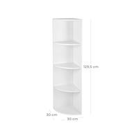 Udnyt pladsen optimalt med denne elegante hjørnereol med fire niveauer. De buede hylder giver et let og moderne udtryk og er behagelige i hjem med børn. Reolen er ideel til at fremvise bøger, planter, legetøj og dekorationer i stue, soveværelse, køkken eller arbejdsrum.