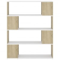 Bogskab/rumdeler 100x24x124cm konstrueret træ hvid og sonoma-eg