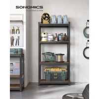 Denne robuste opbevaringsreol giver dig orden i stue, køkken eller garage. De stærke spånpladehylder støttes af en stålkonstruktion med ekstra forstærkningsbøjler, så dine dåser med maling, værktøj eller træningsudstyr står sikkert. Overfladen i rustik brun træstruktur kombineret med sort stål tilfører et stilfuldt, industrielt udtryk, der passer ind både i hjemmet og i værkstedet.