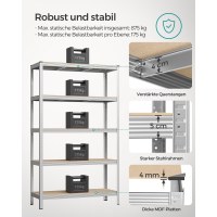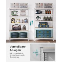 Hold styr på værktøj, kasser og udstyr med denne rummelige reol i stål fra SONGMICS. Hver hylde bærer op til 175 kg, og en medfølgende væltesikring gør det let at fastgøre reolen til væggen for ekstra stabilitet. Perfekt i garage, skur, kælder eller bryggers, hvor der er behov for stærk og overskuelig opbevaring.