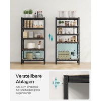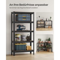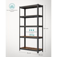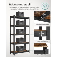 Få orden i stue, køkken eller garage med dette robuste reolsystem i industrielt design. De solide hylder i spånplade bæres af en stålramme med ekstra forstærkning, så reolen tåler op til 130 kg pr. hylde og samlet 650 kg. Den rustikke brune træstruktur giver et stilfuldt udtryk, der passer lige så godt til boligindretning som til praktisk opbevaring af maling, værktøj eller træningsudstyr.