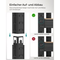 Hylderne er justerbare i højden via smarte samlinger uden brug af værktøj, så du hurtigt kan tilpasse pladsen til kasser, mapper og køkkenmaskiner. Reolen kan desuden deles i to lave enheder – brug f.eks. den ene i køkkenet til ovn og mikroovn og den anden i kontoret til bøger, planter og printer.