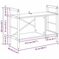 - Samlede dimensioner: 75 x 30 x 58,5 cm (L x B x H)