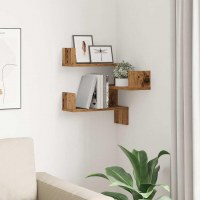 Væghængt hjørnehylde 40x40x49,5 cm konstrueret træ antikt træ