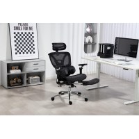 Activejet YK848 ergonomisk kontorstol – sort mesh med fodstøtte
