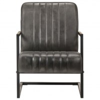 Denne stol er lavet af ægte læder med en rustikgrå finish, hvilket gør den blød. Takket være det tyktpolstrede sæde og ryglæn er lænestolen yderst komfortabel og nem at rengøre. Det robuste, pulverlakerede jernstel gør den stærk og holdbar.