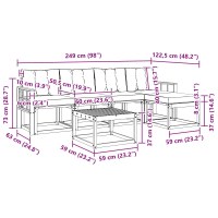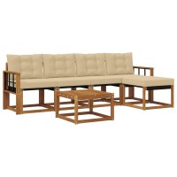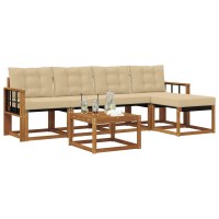 Dette sæt af udendørsmøbler blander stil og funktionalitet og skaber et flot midtpunkt for enhver have eller terrasse. Dets moderne design med rene linjer og enkel detaljering tilføjer elegance, samtidig med at det understøtter udendørs afslapning og sociale sammenkomster. Hele sættet er lavet af solidt akacietræ, der sikrer både holdbarhed og tidløs skønhed, så det er det perfekte valg for dem, der vil have både praktisk og elegant udendørs møbler.