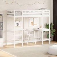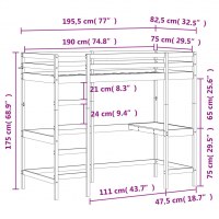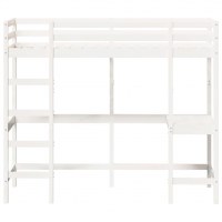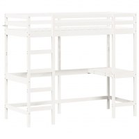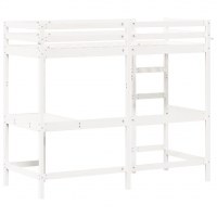 Højseng med skrivebord 75x190 cm massivt fyrretræ hvid