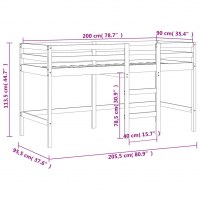 • Stabil trækonstruktion: Denne højseng er fremstillet af massivt fyrretræ for stabilitet og holdbarhed. Fyrretræ har lige åremønstre, og knasterne giver materialet sit unikke og rustikke look.