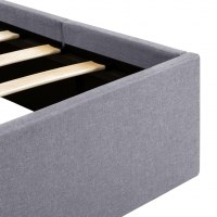 Det pulverlakerede stålstel og lamellerne i krydsfiner gør sengen ekstra robust og holdbar. Opbevaringssengen er betrukket med slidstærkt stof, så den ser indbydende ud og er nem at vedligeholde. Sengen er nem at samle. Dette soveværelsesmøbel er egnet til en madras på 140 x 200 cm.