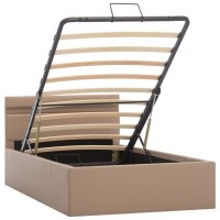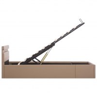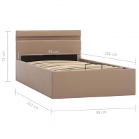 Hydraulisk opbevaringsseng LED 90x200 cm kunstlæder cappuccino