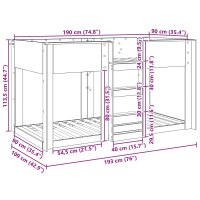 - Samlede dimensioner: 193 x 109 x 113,5 cm (L x B x H)