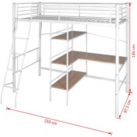 - Materiale: Sengestel i metal, skrivebordsplade og hylder i træ