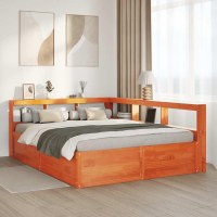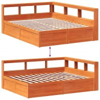 Seng med reol uden madras 160x200cm massivt fyrretræ gyldenbrun