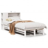Seng med reol uden madras 90x190 cm massivt træ hvid