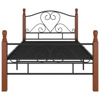 Dette sengestel i metal har et stilfuldt design og en massiv konstruktion, da det er lavet af stærkt, pulverlakeret metal og mørkt, skinnende egetræ. De robuste lameller giver den nødvendige støtte og komfort, så du kan nyde en god nattesøvn hver nat i denne dobbeltseng.
